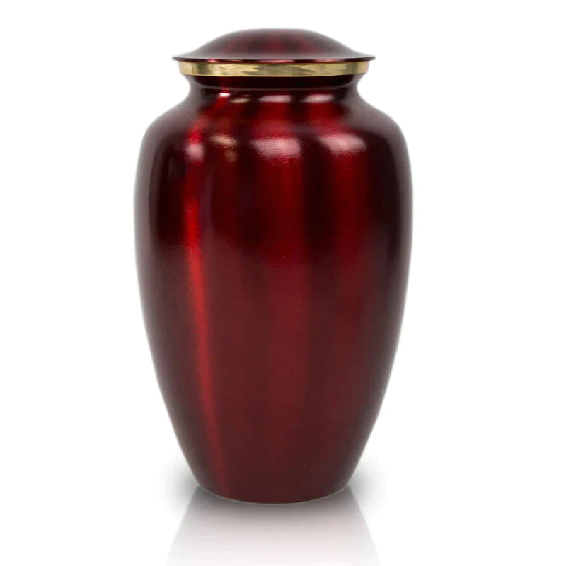 Cherish Their Memory in Vibrant Elegance With Our Brass Crimson Adult Cremation Urn - A Touch of Love in Every Shade of Crimson.